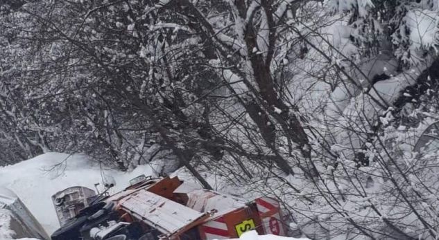 Rrokulliset kamioni për mirëmbajtjen e rrugëve në Bogë, dy persona të lënduar
