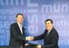 Teksa ilustronte me lajme nga mediat italiane çështjet e drogës, plehrave etj., Berisha, duke qeshur, edhe vetë ka lexuar disa tituj në italisht.