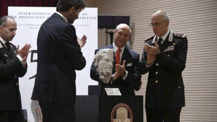 Ambasadori amerikan në Itali Lewis Eisenberg ua ka kthyer sot autoriteteve italiane kokën e statujës, e cila u vodh nga një vend arkeologjik në Romë në vitin 1968 dhe arriti në koleksione private.