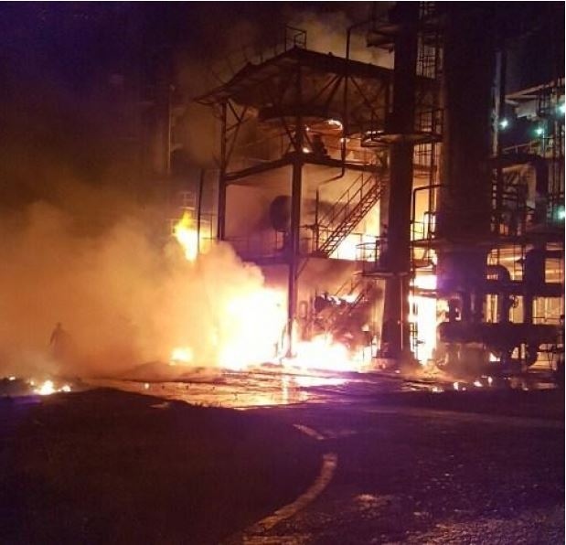 Shpërthimi ka shkaktuar një zjarr të madh që rrezikon sektorin e reaktorëve. Ekipet e emergjencave janë duke punuar që të evakuojnë të gjithë punëtorët nga uzina, ndërsa në qendra e përpunimit të naftës është përfshirë nga një zjarr me përmasa të mëdha, i cili më pas është vënë nën kontroll nga autoritetet.