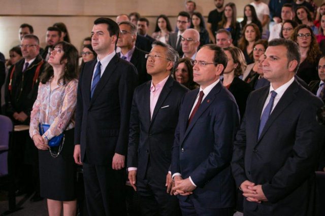 Ish-Presidenti Bujar Nishani, kreu i PD-së, Lulzim Basha dhe Ambasadori i SHBA-së, Donald Lu u shfaqën krah për krah njëri-tjetrit në një aktivitet ku është dekoruar Drejtori i Bordit të Fondit Shqiptaro-Amerikan të Zhvillimit, Michael D. Granoff.