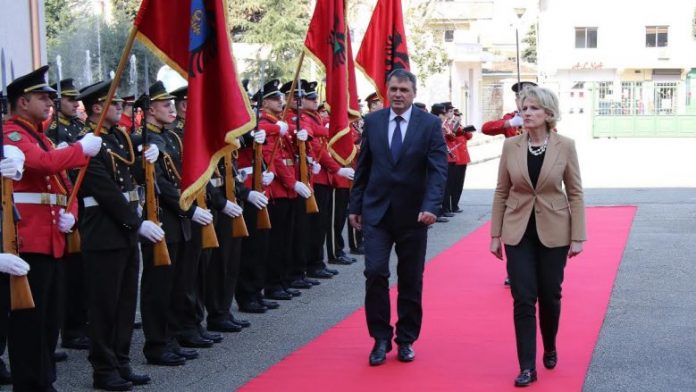 Ministri i Forcës së Sigurisë të Kosovës, Haki Demolli, u prit sot me nderime të larta ushtarake në vizitë zyrtare në Tiranë, nga ministrja e Mbrojtjes, Mimi Kodheli.