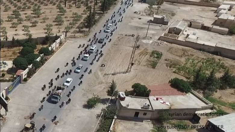 Forcat Demokratike Siriane kanë bërë të ditur se fotografitë tregojnë një kolonë me qindra automjete në ikje nga qyteti.