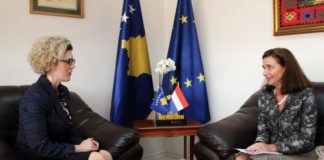 Ministrja e Integrimit Evropian, Mimoza Ahmetaj priti sot në takim pune Ambasadoren e Holandës në Kosovë, Gerrie Willems.