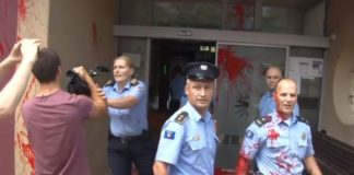 Para stacionit kryesor të Policisë së Kosovës dhjetëra aktivistë të VV-së kanë hedhur ngjyrë të kuqe drejt ndërtesës dhe policëve.Pas aksionit policia ka arrestuar...