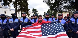 Një protestues përpara parlamentit është shfaqur me një flamur amerikan në tubimin që opozita mban sot përpara parlamentit.Kujtojmë se në të gjitha protestat e...
