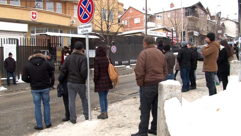 Përkundër të ftohtit të madh qytetarë të shumtë presin me orë të tëra, në mënyrë që të marrin një vizë për të udhëtuar për në shtetin zviceran qoftë për vizitë familjare apo shërim.