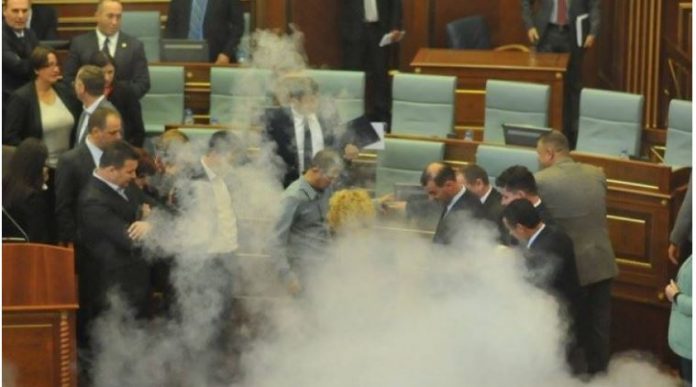 Në këtë listë nuk ka munguar as Kosova, në parlamentin e së cilit janë përdorur shtyrje, sharje, karrige, vezë, gaz lotsjellës dhe sprej.