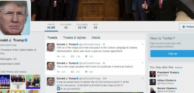 “Me gjithë aktet ilegale të ndodhura në fushatën elektorale të Klinton dhe në administratën Obama nuk është vendosur kurrë një prokuror special. Kjo është gjuetia e shtrigave më e madhe ndaj një politikani në historinë amerikane”. Ky ishte komenti I presidentit Donald Trump pas emërimit të ish-kreut të FBI, Robert Mueller si prokuror special për të mbikëqyrur hetimet rreth lidhjeve mes administratë së presidentit amerikan me Rusinë dhe ndikimin e Moskës në zgjedhjet presidenciale të Shteteve të Bashkuara. Vendimi I Departamentit të Drejtësisë është marrë pa konsultim me Shtëpinë e Bardhë.