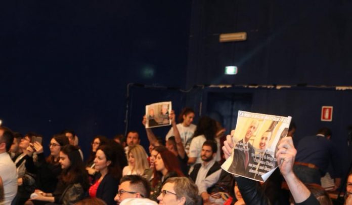 Incidenti ka ndodhur në brendësi të Sallës Blu. Protestuesit, të gjithë shqiptarë, banues jashtë Torinos, kanë mbajtur në duar disa letra format A4, me një foto ku shfaqej një shtrëngim duarsh mes ministrit të Brendshëm italian, Marco Minniti dhe homologut shqiptar Fatmir Xhafaj, i cili ndodhet në qendër të akuzave të opozitës për mosekstradimin dhe burgosjen e vëllait të tij, i dënuar për trafik droge pikërisht në shtetin italian.