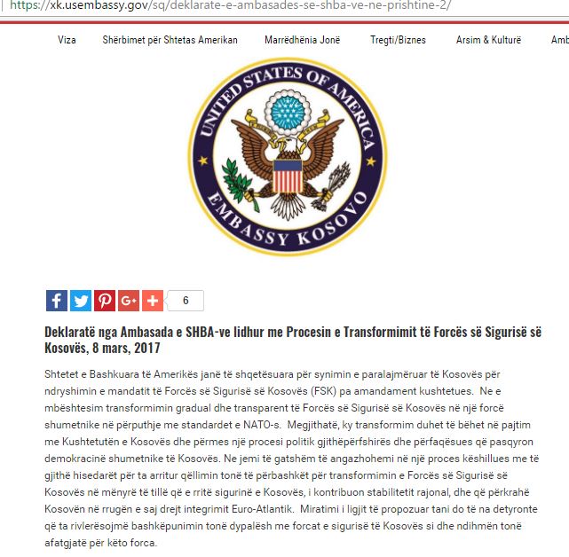 Prandaj është në interesin e Kosovës që të kërkohen mënyra se si shndërrimi i FSK-së në FA të bëhet në bashkërendim me aleatët tanë strategjikë, e në mënyrë të veçantë me SHBA-të dhe me NATO-n, e të cilët do të ishin edhe garantë të mëtutjeshëm të sigurisë së jashtme të Kosovës, por edhe do të pengonin serbët të krijonin një ushtri paralele. Në këtë mënyrë Kosova do të kishte edhe ushtrinë e saj, edhe do të vazhdonte të kishte mbështetjen e aleatëve tanë, edhe do të ishte më e sigurt. Gjithë procesi i ndërtimit të TMK-së, e pastaj shndërrimi i saj në FSK dhe ndërtimi i strukturave, i rritjes së aftësive profesionale, të resurseve njerëzore dhe teknologjike është bërë në bashkërendim me NATO-n dhe SHBA-të. Dhe as NATO, as SHBA nuk janë kundër që Kosova ta ketë ushtrinë e saj, por duan që kjo të bëhet me anë të ndryshimeve kushtetuese dhe në bashkërendim me ta. E Kosova është me fat që sikurse në procesin liri, pavarësi, demokraci, edhe në çështjen e transformimit të FSK-së në FA që ka vullnetin, gatishmërinë dhe mbështetjen e SHBA-ve dhe të NATO-s. Shtete të fuqishme, të konsoliduara dhe madje edhe me traditë shekullore do ta lakmonin Kosovën që ka një mbështetje kaq të madhe nga SHBA-të dhe nga NATO.