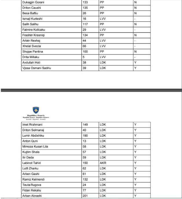 Më poshtë ju sjellim listën me emrat e deputetëve të cilët votuan pro dhe kundër kësaj marrëveshje.