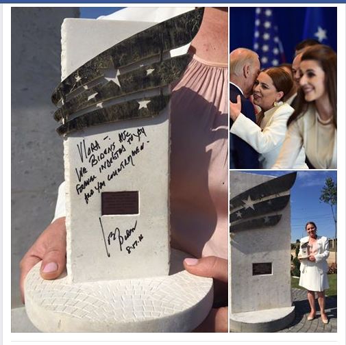 Pas përfundimit të ceremonisë së emërtimit të rrugës me emrin e Joseph R. “Beau” Biden, III, me iniciativë të Zëvendës Presidentit Joe Biden, ai i ka ndarë disa minuta të veçanta për shefen e Stafit të Kryeministrisë, Vlora Dumoshi, në respekt të institucioneve të Kosovës për organizimin. Në këtë rast, Zëvendës Presidenti ka falënderuar Vlora Dumoshin, si një nga organizatorët e vizitës duke e nderuar me një kopje të nënshkruar të monumentit, të cilin Vlora e ka ideuar dhe ka punuar intensivisht për realizimin e projektit.